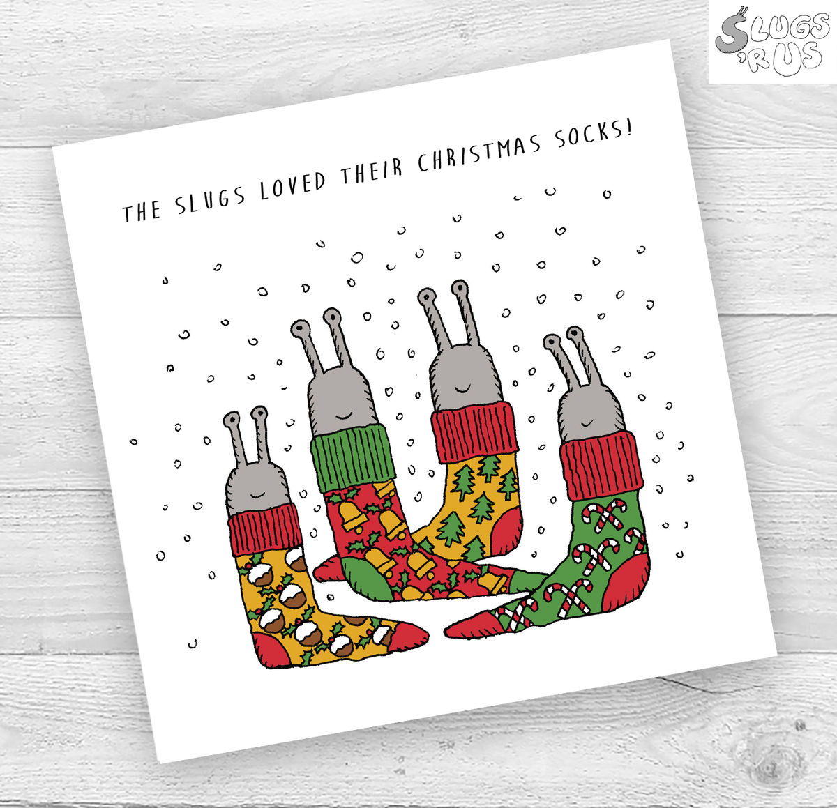 Four cards to choose from Christmas Socks, Snow slug, Christmas Gnome, Sledging Slugs or a pack of all four at a discount.